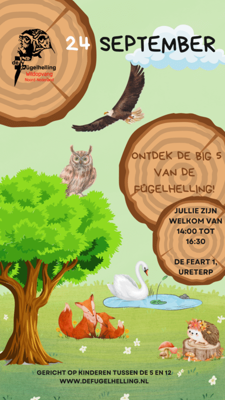 Kom op woensdag 24 september zoeken naar de Big 5 van wildopvang de Fûgelhelling. Tussen 14.00 en 16.30 uur kun je je stempelkaart volmaken met leuke opdrachten. Neem ook vooral je vrienden mee. De middag is gericht op kinderen tussen de vijf en twaalf jaar en vindt plaats bij de Fûgelhelling in Ureterp. Vind jij […]
